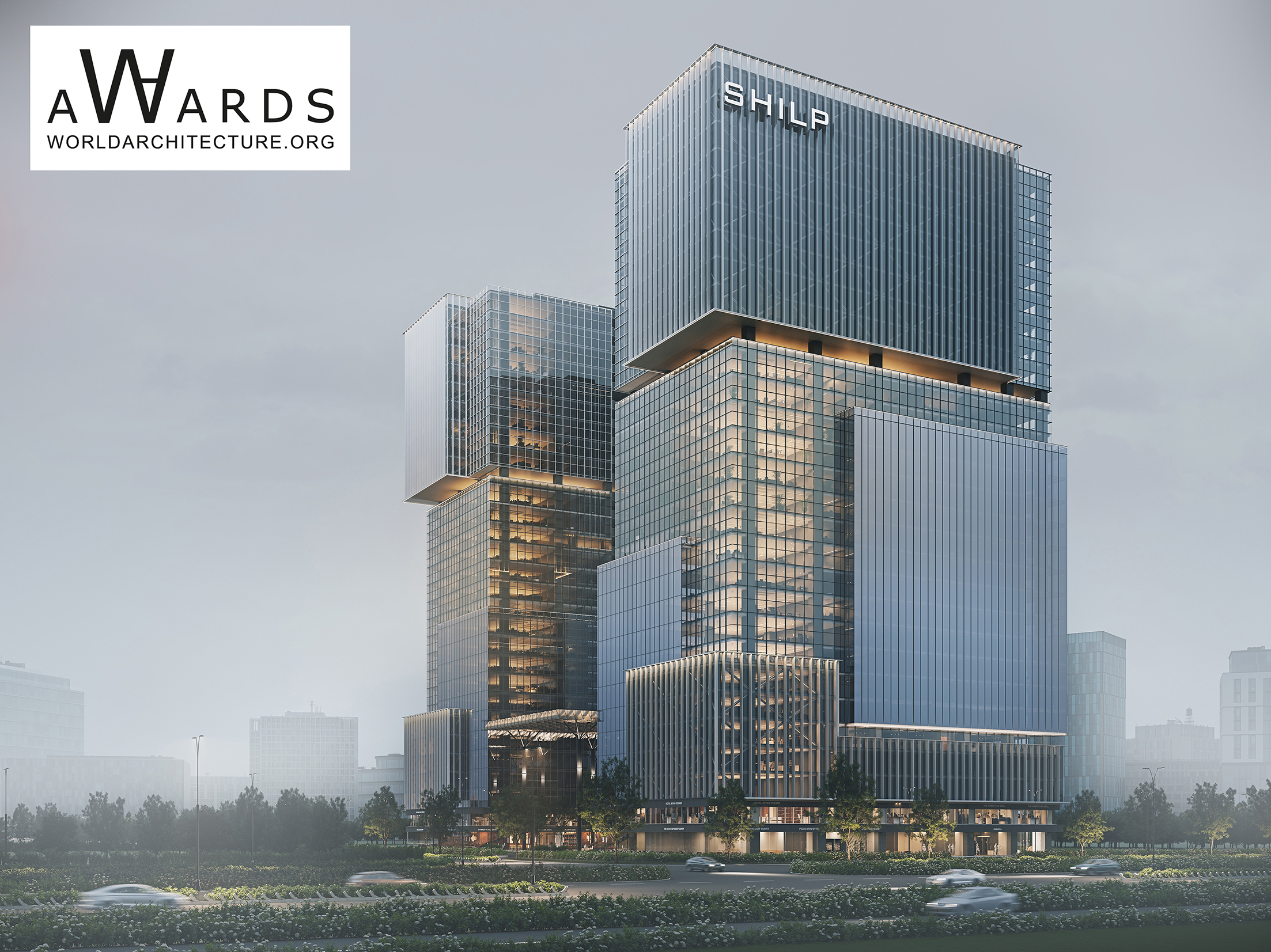 Shilp Twin Towers won the World Architecture (WA) Community Awards 53rd Cycle (10 Projects) in the Architecture-Designed category.