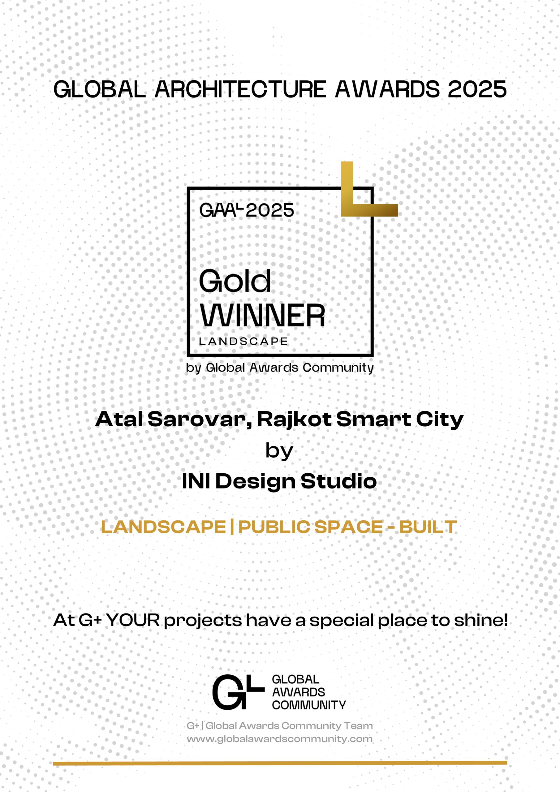 Atal Sarovar, Rajkot Smart City won Gold Award in the Landscape Architecture - Public Space - Built category at the Global Architecture Awards (GAA) 2025.