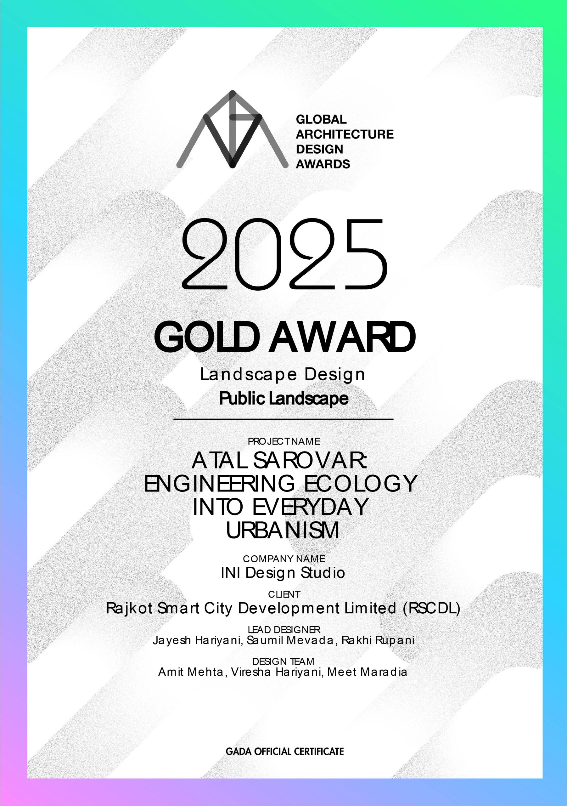 Atal Sarovar: Engineering Ecology into Everyday Urbanism project won Gold Award in the Landscape Design-Public Landscape category at the Global Architecture Design Awards 2025.
