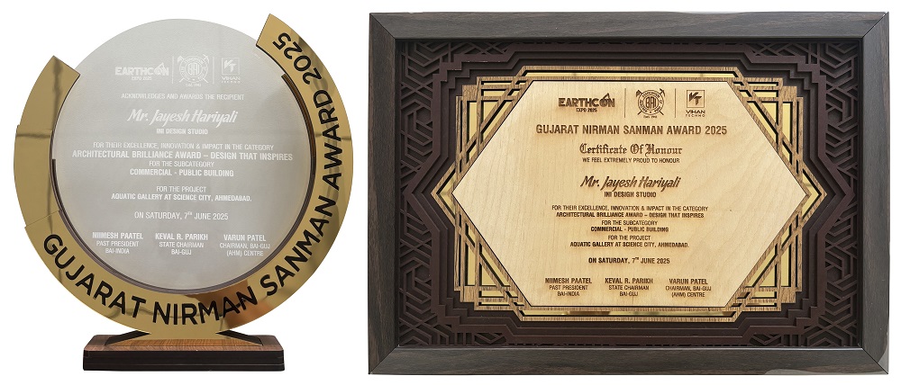 Aquatic Gallery has won Gujarat Nirman Sanman Award - 2025 in the Architectural Brilliance Award - Design that Inspires for the subcategory Commercial - Public Building category.