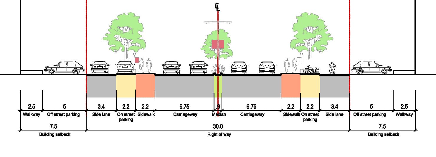 - Service / side lane proposed in the right-of-way towards the private properties to retain access to the parking areas in the same