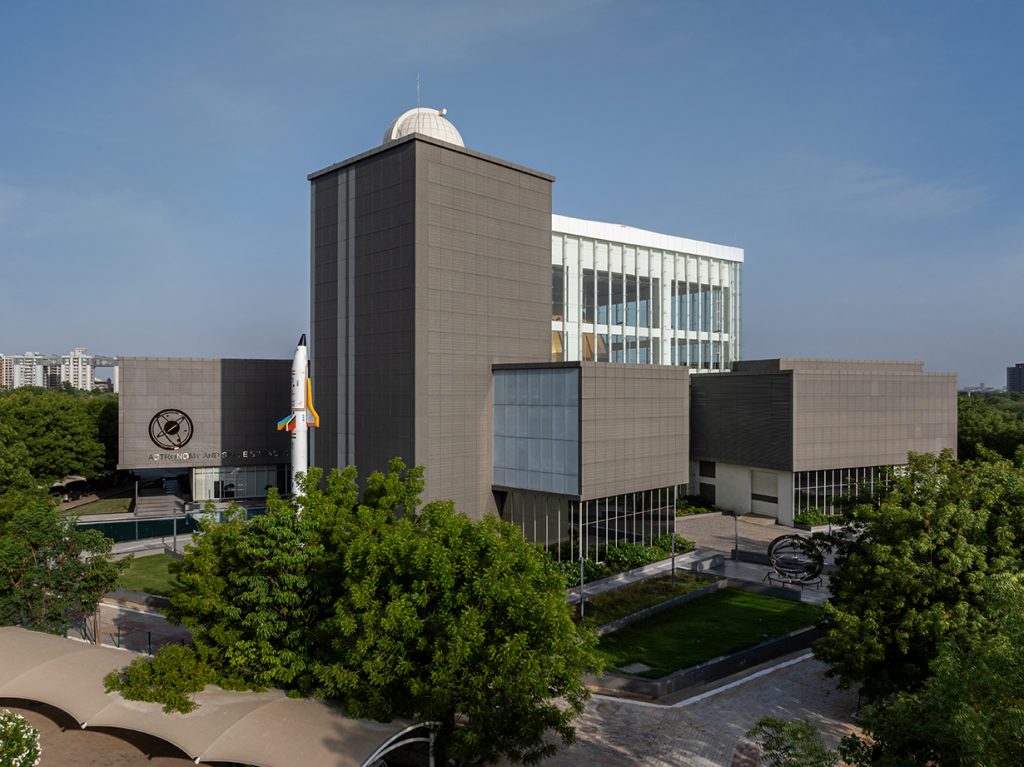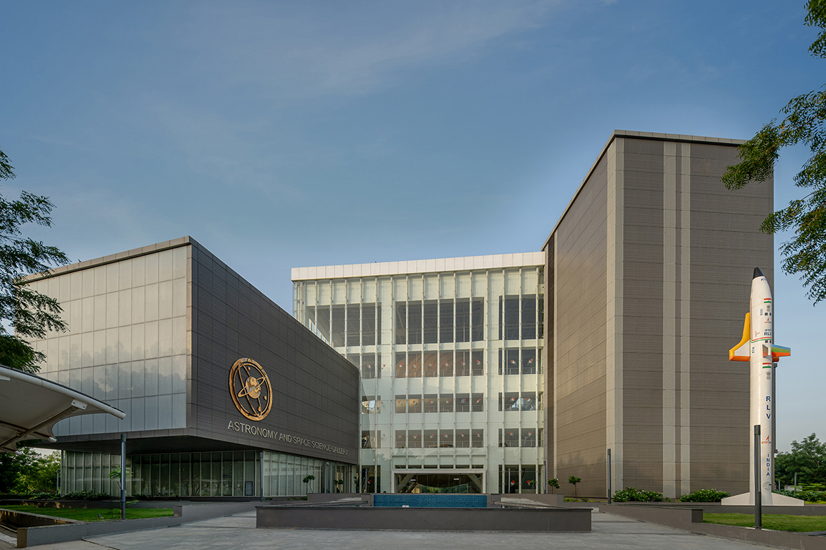 This Astronomy and Space Science Gallery is the largest in India and forms a part of the Gujarat Science City project which is a State Government initiative to build a mega exhibit and experience centre to promote awareness regarding scientific phenomena and cultivate a scientific temper among common citizens. This particular gallery, one among many at the science city, is located on an ear-marked hexagonal plot of 1 hectare adjacent to similar plots housing the Aquatics and Planet Earth Galleries, thus completing the triumvirate of earth, water and space.The design requirement for this particular gallery was to create an impactful, attractive venue for public exhibits which people can easily navigate around and can simultaneously educate and entertain while disseminating information regarding the subject.