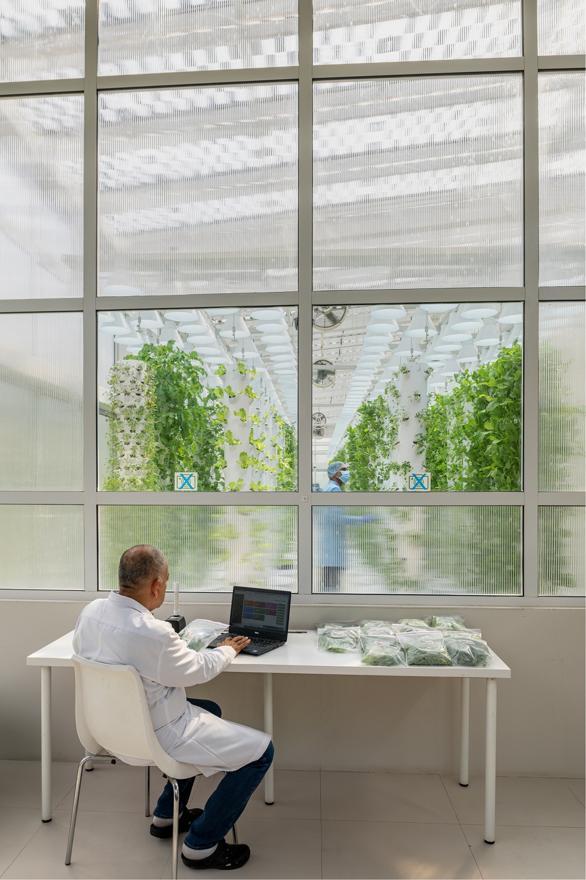 offering precision, predictability, and the ability to decouple food production from land and climate constraints. What followed was an iterative, interdisciplinary design process in which architecture, process engineering, agronomy, lighting technologies, water systems, nutrient chemistry, and automation converged into a single integrated framework.
