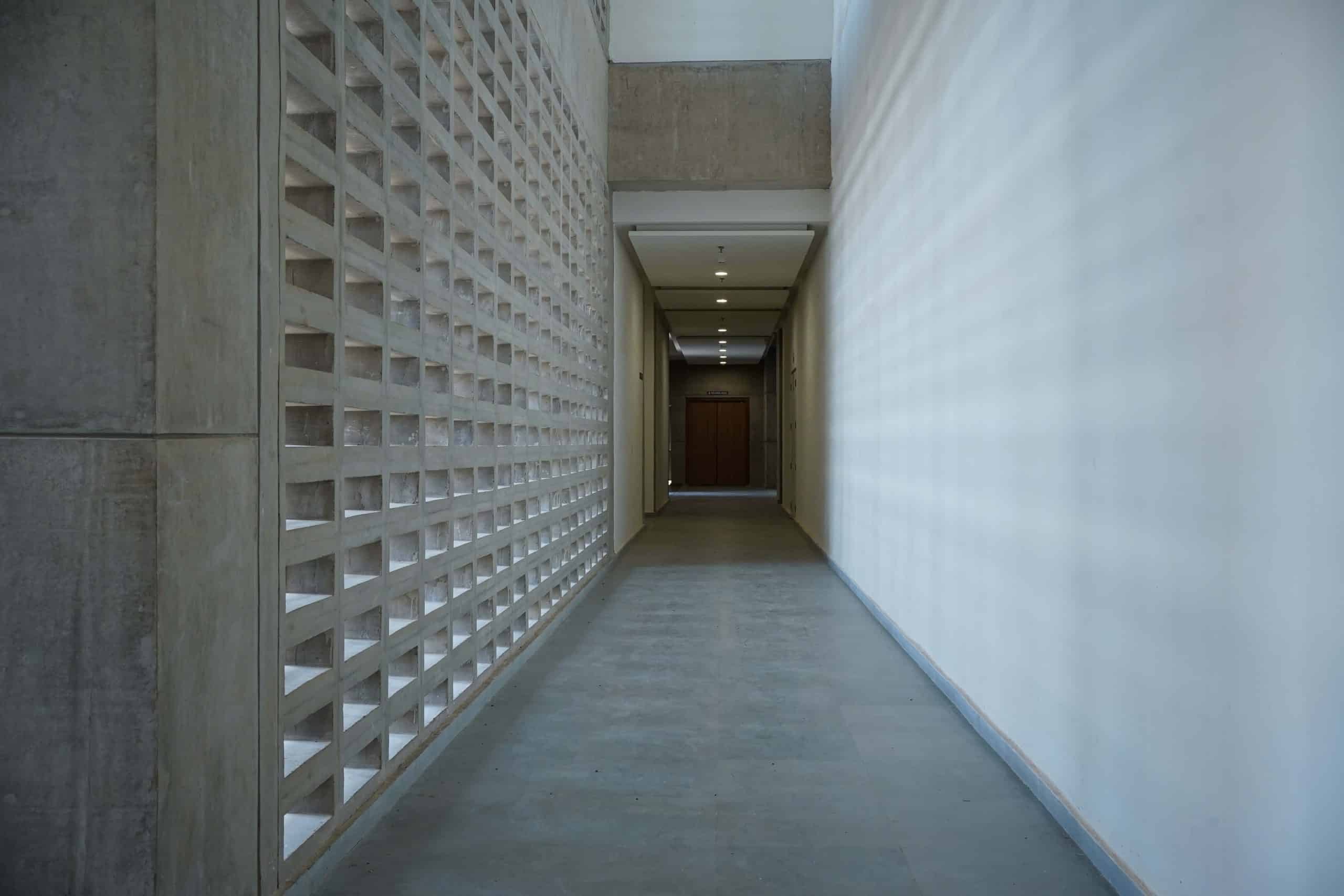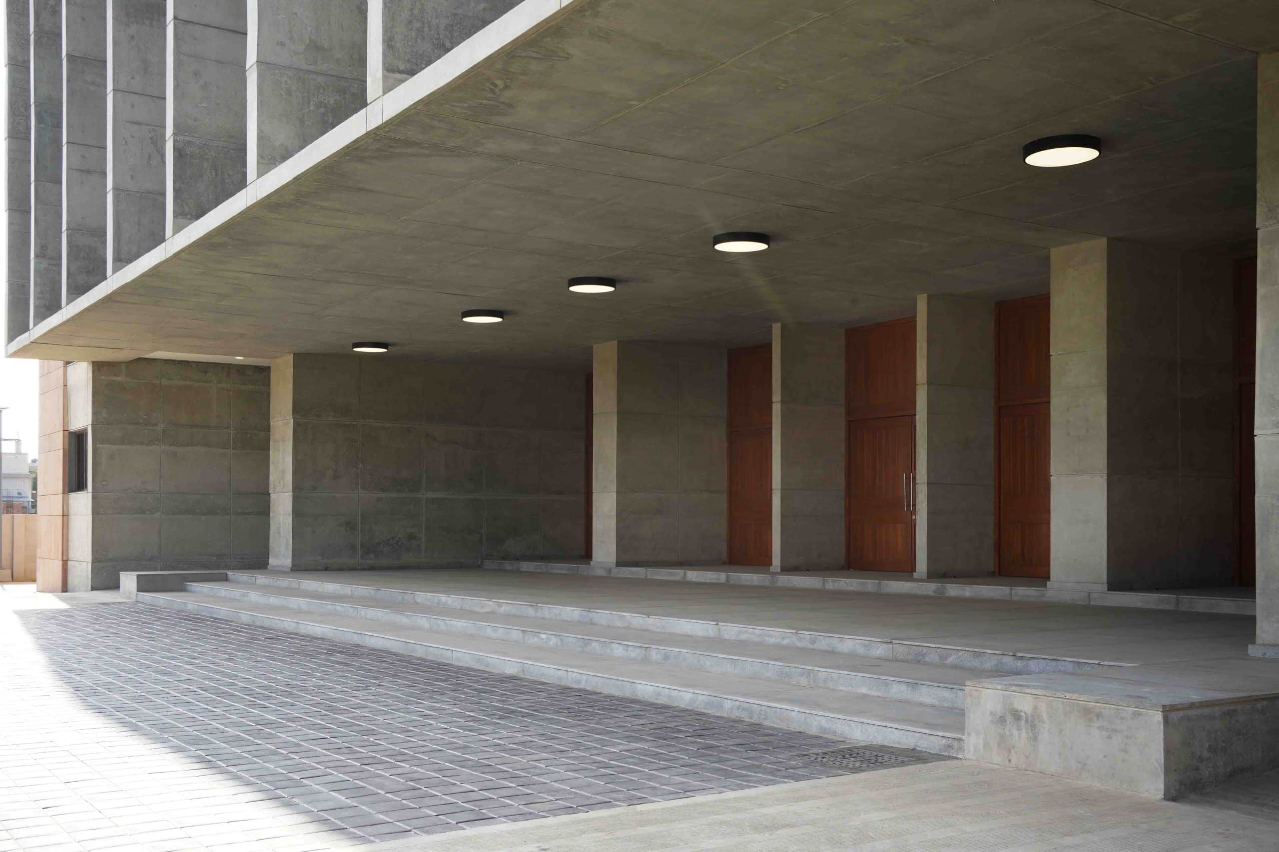 The main usable spaces have been insulated from harsh hot climate through the concept of arranging the peripheral spaces like the arrival and pre-function lobbies, vertical circulation core, toilets, as well as back of the house service spaces, which act as a buffer, reducing the air-conditioning load.