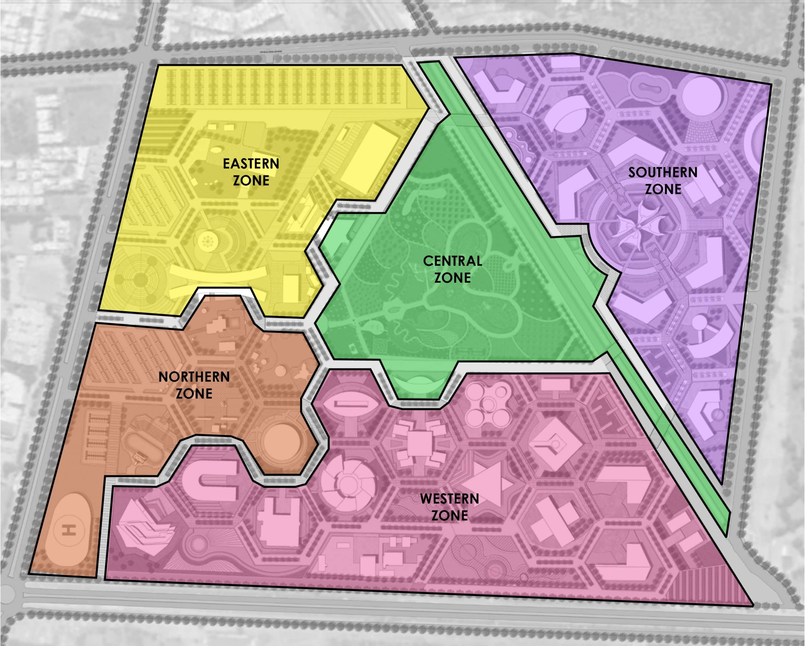 With a strong need to transform the place into an epitome of curiosity, the design team strengthened and furthered exploration of multiple hexagonal Mandalas. Mandalas are a representation of the cosmos or universe as an integrated and interdependent web of systems. The proposed design aimed for each hex to have green spaces with radiating pathways for the site to be highly interconnected and walkable. With a biotech park, big bytes, how things work, kinetic sculpture park, science playground, and the iconic tower at the heart of the development the master planning weaves new and diverse themed spaces into an already astounding landmark.