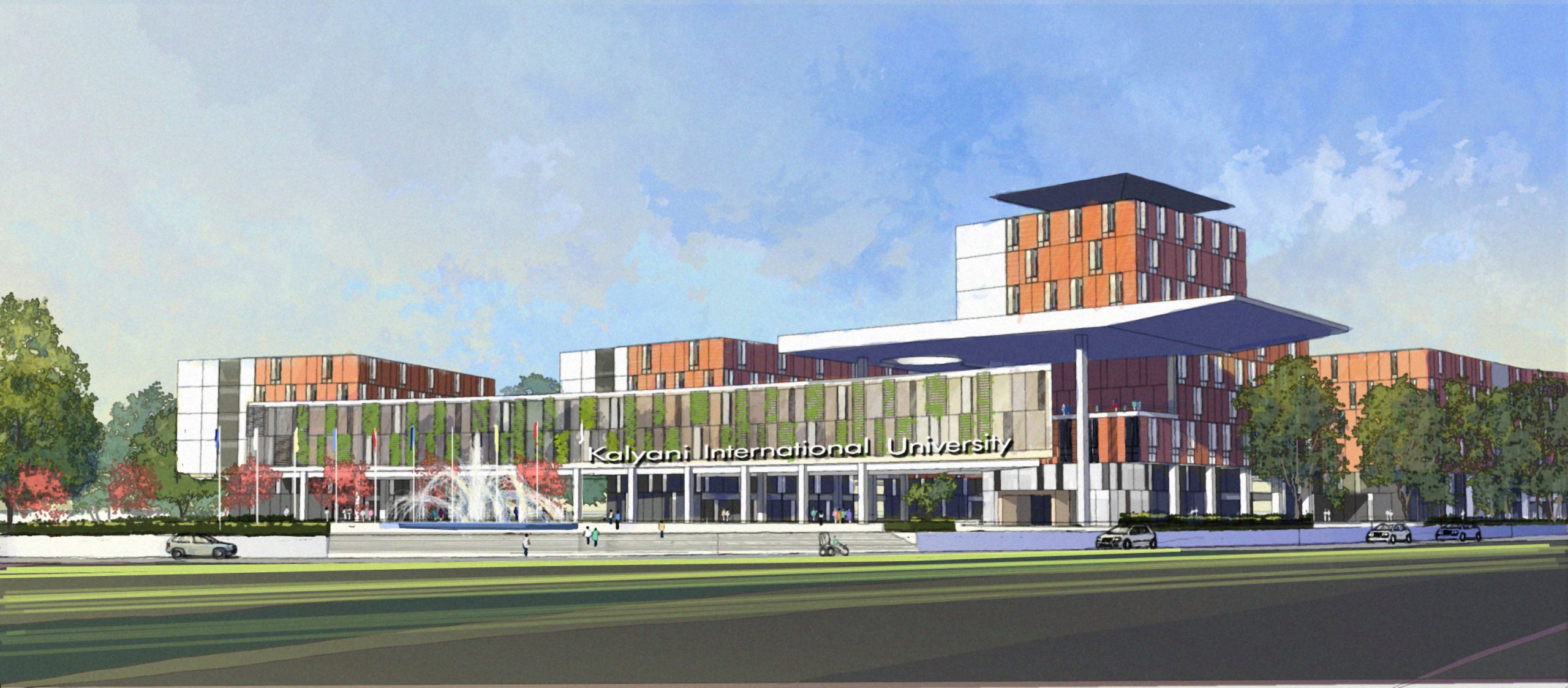 The Master Plan thus allows the landscape to guide the location of built-forms and campus to be developed without significant cutting and filling of the site, ensuring sustainability through the preservation of natural landforms and the biodiversity linked to it. Moreover, the arrangement also affords a climate-responsive section for each building block, where the longer sides facing the west are covered by a variety of sun-shading devices at various levels, the top-most being a projecting canopy of vine-covered pergolas and the bottom floors fronted by deep loggias. The intermediate façade levels constitute exposed brickwork walls framed by concrete fins and shelves for glazed openings which take care of daylighting free of glare and heat for the optimally deep floor plates. Harsh southern sun is obstructed by almost-blind facades in that direction with service shafts clustered along them. This composition of brick, concrete, glass and green elongated blocks tracing the slope lines, overlooking verdant, shaded pedestrian pathways infuses a sense of place, vibrancy and belonging in the campus ambience. The peripheral road intersections and significant junctions are marked by iconic installations elevating the campus aura.