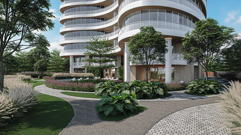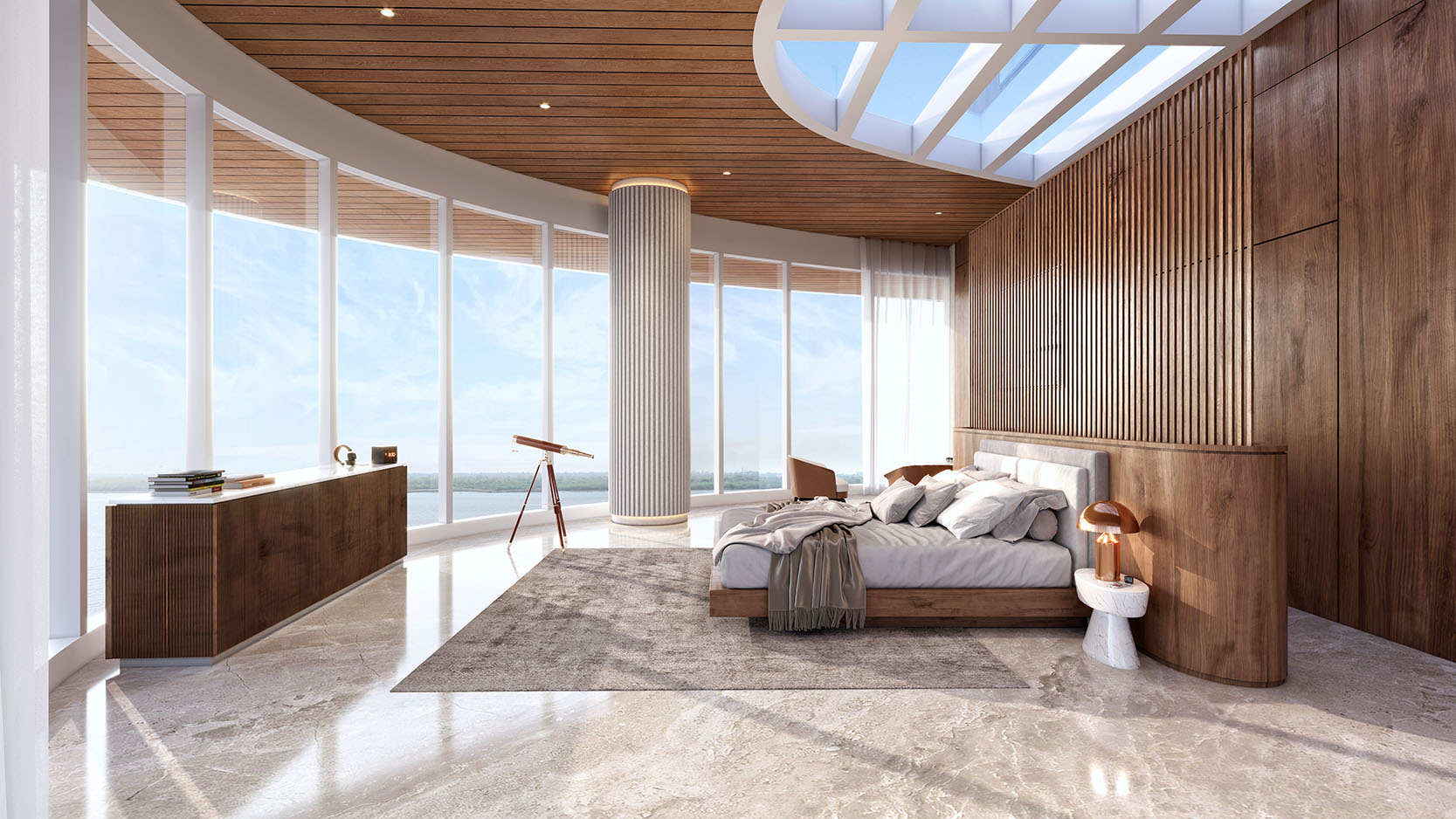 immersive and unparalleled living experience. The villa interiors also mirror the fluidity of the external form. Curved