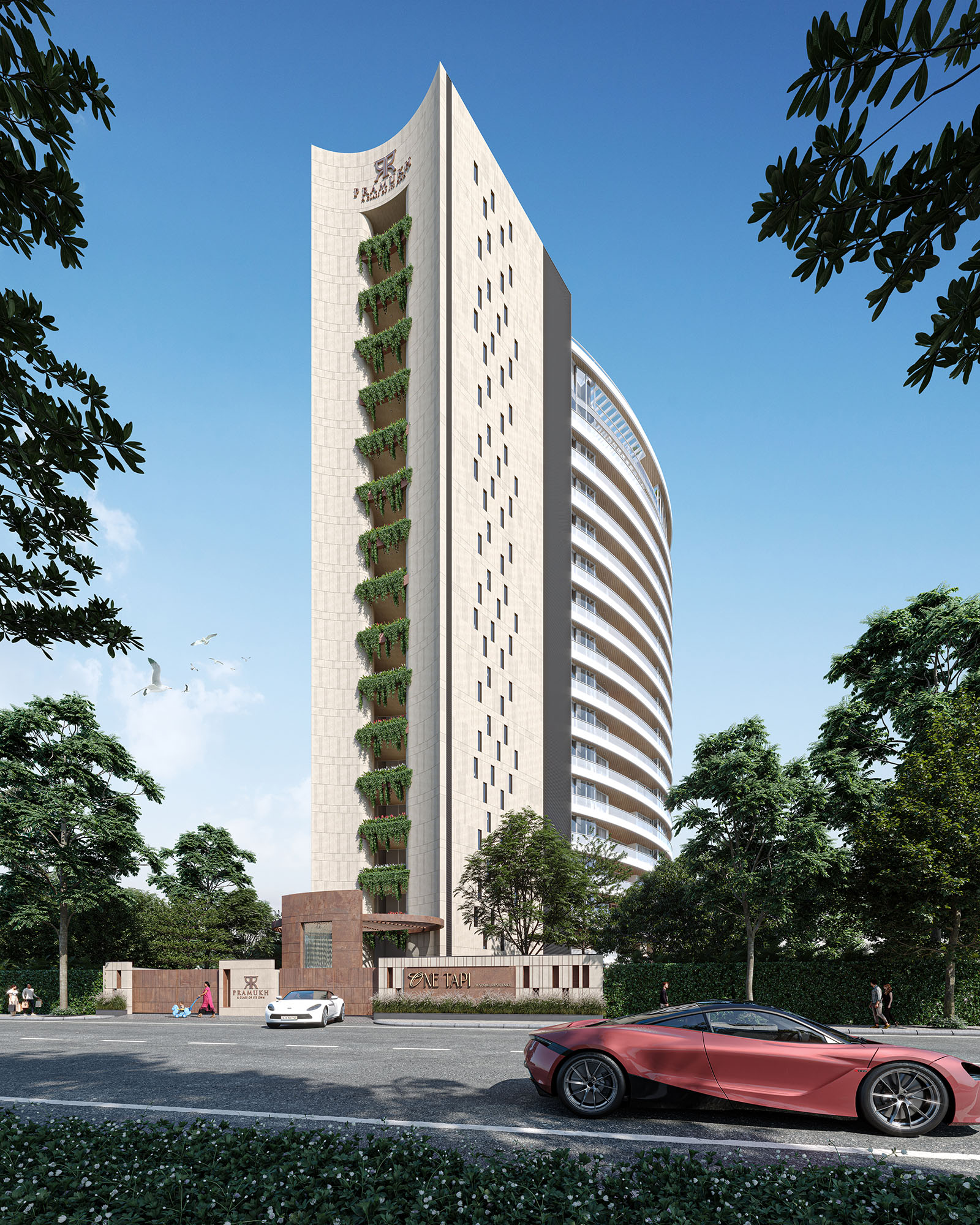 This exclusive residential enclave stands as a majestic edifice, soaring to a height of 70 meters across 14 floors, consisting