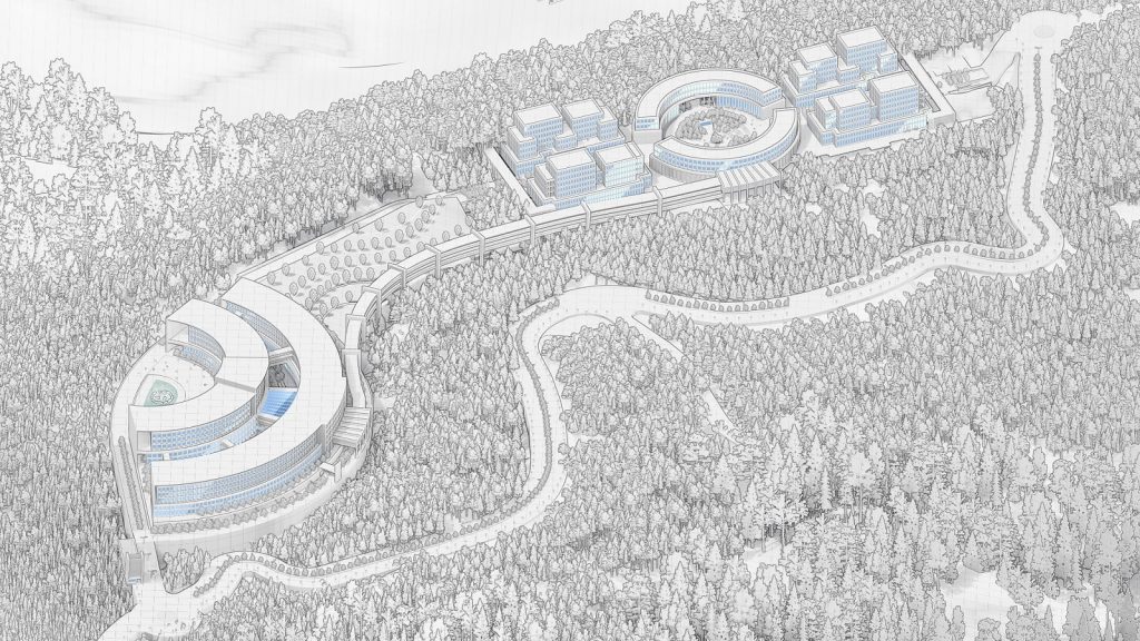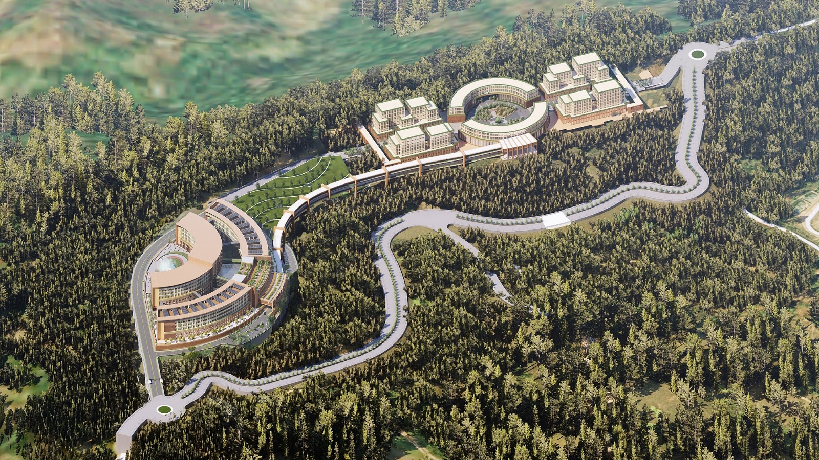 Set against the dramatic hills and valleys of New Shillong, the proposed Meghalaya Secretariat represents a landmark vision— an administrative campus where governance is interwoven with culture, nature, and sustainability. The complex is imagined as a powerful symbol of the “New Aspiring Meghalaya,” reflecting the state’s progressive ambitions while being firmly grounded in its ecological and cultural heritage. Designed across a 53-acre forested site with significant terrain variation, the Secretariat integrates with the land through minimal disturbance and contextual sensitivity, forming a development that is as much about place as it is about purpose.
