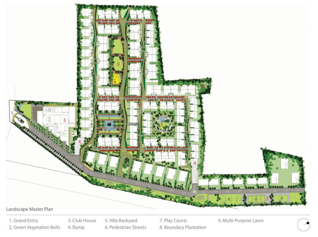 Completely Vehicle-Free Landscaped Community of Unbounded Villa Plots