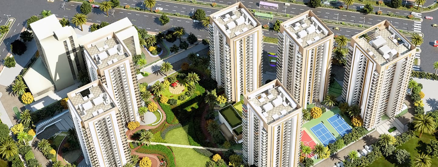 Tall Residential Towers amidst Landscaped Greens & Amenities