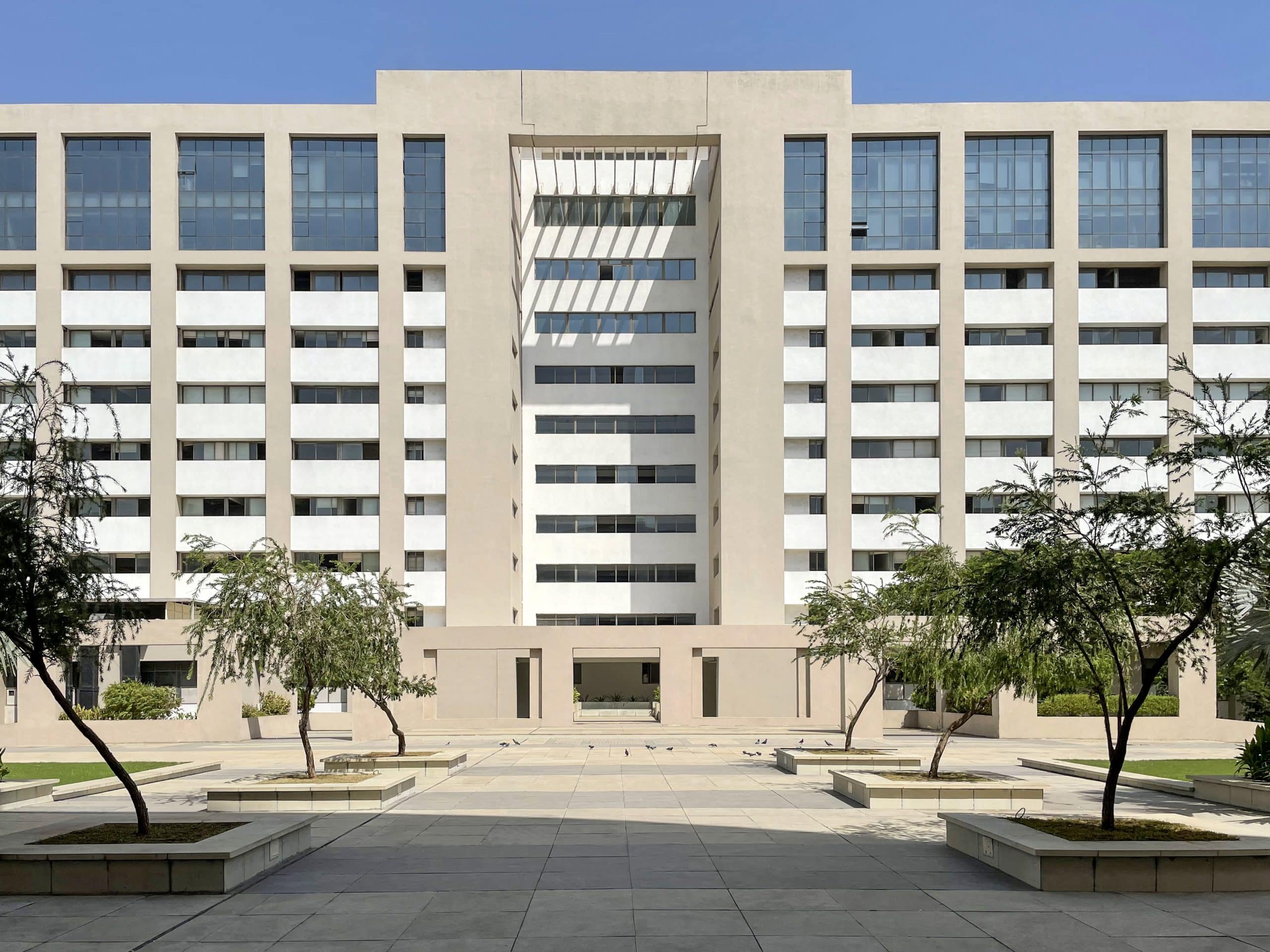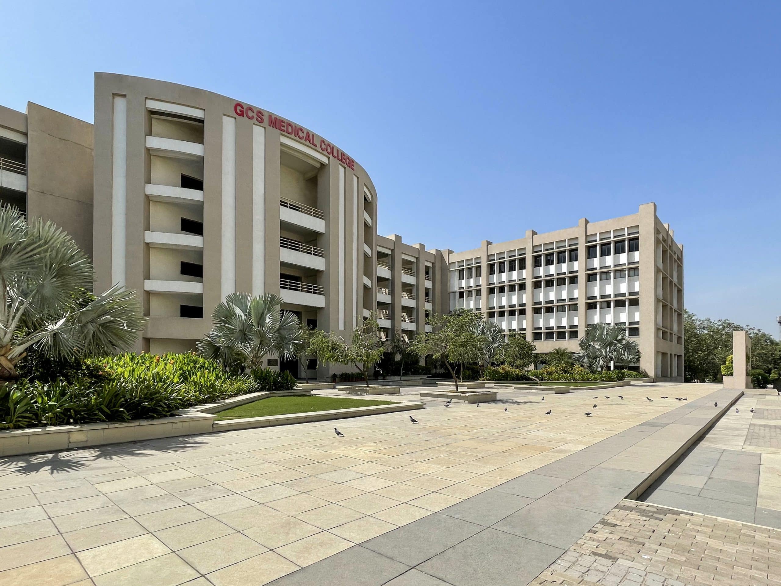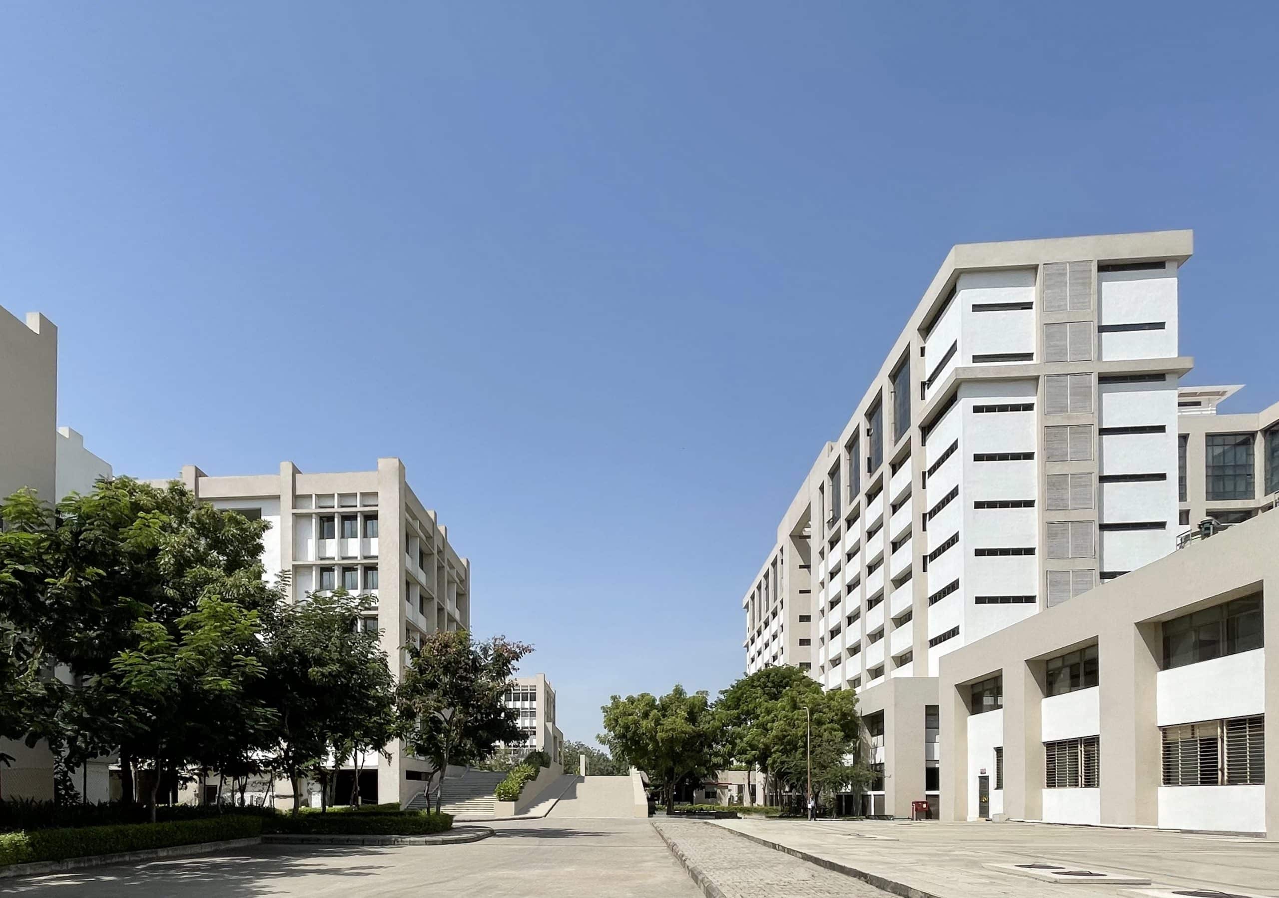 The Gujarat Cancer Society, a trust under the Ahmedabad Civil Hospital, commissioned the development of a highly equipped and technologically advanced campus dedicated to cancer care, research and teaching on a 25 acre site in the north-eastern periphery of Ahmedabad city. The brief included the development of a multi-departmental cancer care research and teaching hospital with a capacity for more than 900 beds, a medical college for 150 annual admissions and residential facilities for students, resident doctors and paramedical staff – all designed as per the norms mandated by the Medical Council of India (MCI).
