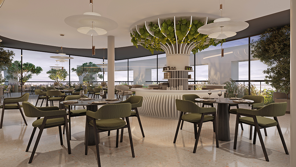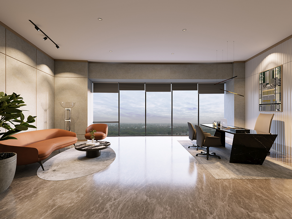 The 300-ft tall atrium redefines spatial experience, highlighting a blend of creativity and engineering. The intricately crafted reception lobby with the fluid curves of the ceiling adorned with fiber-optic starlight, truly redefine the spatial experience within the setting. An intricate blend of creativity and engineering expertise provides a distinctive and immersive ambiance. The atrium faces east and north-east ensures natural light throughout the day, with passages overlooking a green terrace on the third floor, highlighting a commitment to sustainability. The rooftop terrace, designed for tranquillity and connection to nature, comprises a restaurant and amenities. Surrounded by plantations and treated to a view of the Gift City skyline and Sabarmati River, Shivalik Curv showcases the balance between urban sophistication and a verdant atmosphere, and stands as a testament to luxury and sustainability, a blend of contemporary design and natural aesthetic.