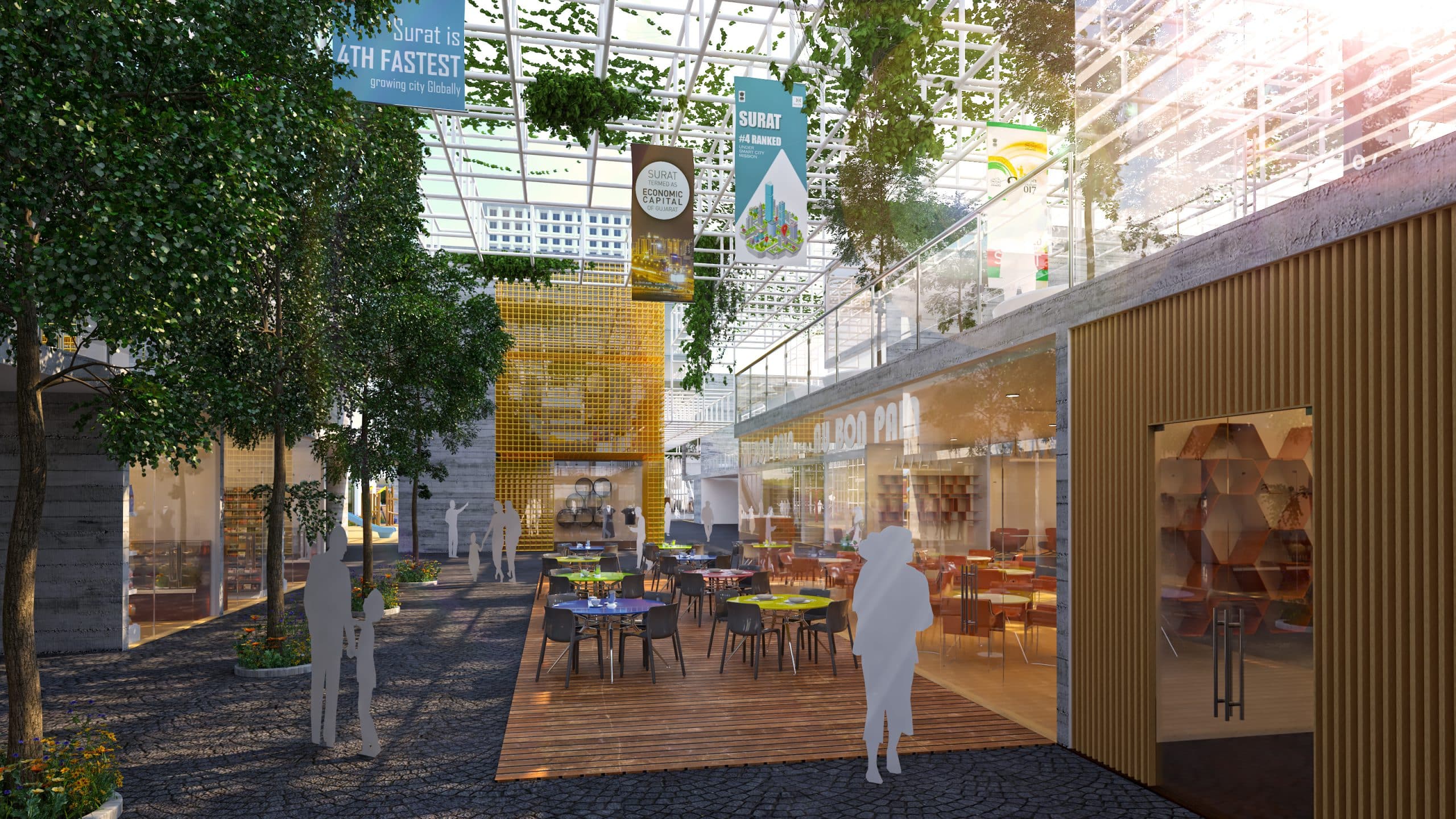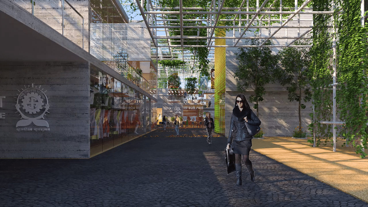 The process of design included extensive research of various successful city Centers across the world and analyzing what factors worked/or not worked. Based on benchmarking study; we proposed mix-use characteristics with public spaces, commercial/retail, hospitality, exhibitions/cultural events, and hosting international/national brands and a museum that showcases cities' reach heritage and leadership in textile and diamond industries. The City Square plays a part as a catalyst for growth providing facilities like urban gardens, handicrafts studios, themed outlets, a children's play area, a theatre, and a Laser show with fountains. The project design also focused on enhancing Surat’s brand & identity for the city while highlighting the rich culture, heritage, and industrial prowess of the city.